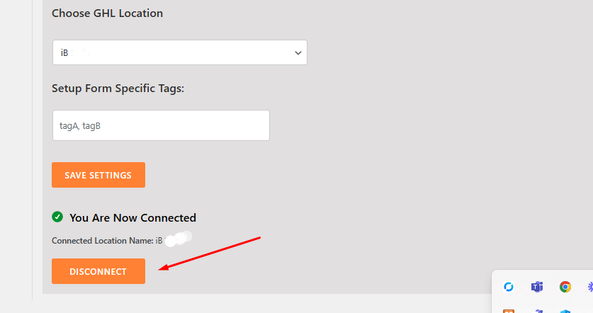 Note: If you want to connect to a different location, click the Disconnect From GHL button. This will disconnect the current connection, allowing you to connect to another location.