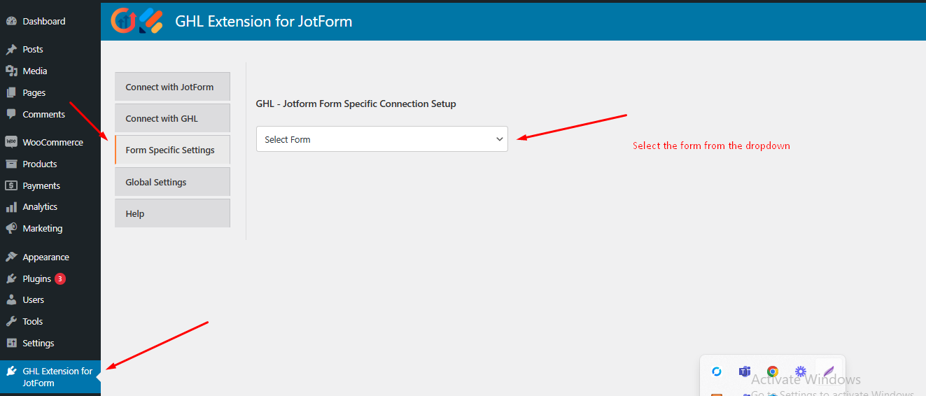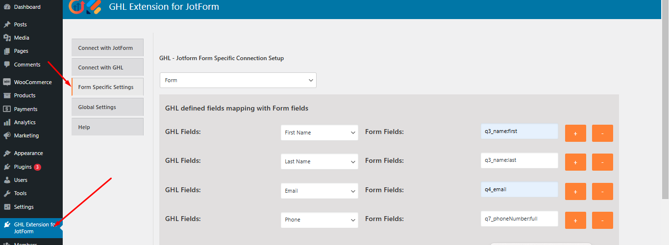 Step-1: To do this, go to the Form Specific tab and select the specific form whose field values you want to send to the GHL CRM: