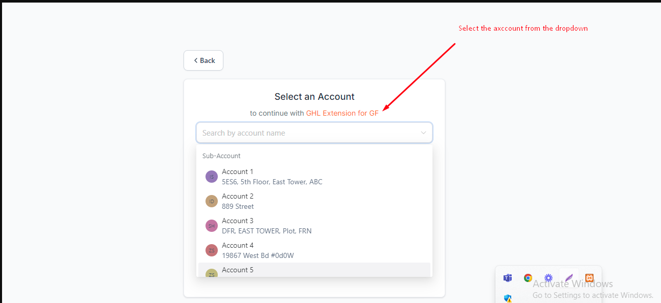 Step-3: If you want to connect this specific form to a different GHL subaccount, click the Select GHL Subaccount dropdown and choose the subaccount where you want to send the leads. Then, save the settings. This ensures that the form's leads are sent to the selected GHL subaccount. If no subaccount is selected, the form will remain connected to the globally connected GHL subaccount (if any), and the leads will be sent there.